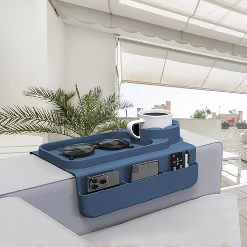 Sofa Arm Cup Holder Couch Tray Coaster Holder Silicone Anti-Slip Armrest Cup Holder with Side Pockets Remote Phone Organizer